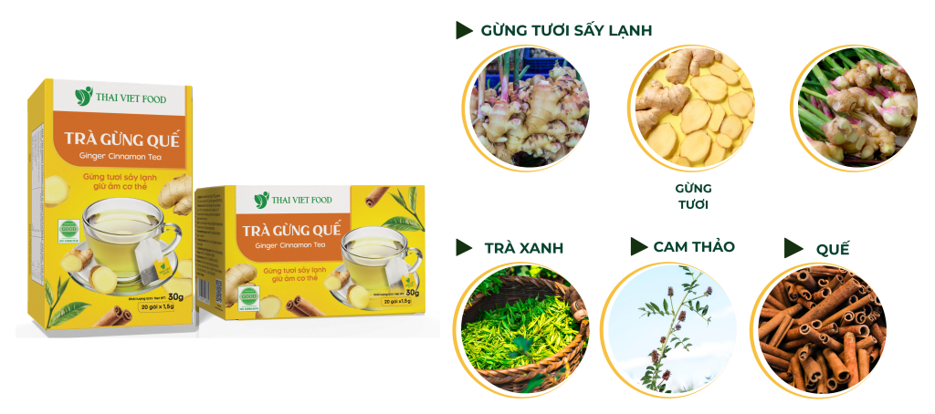 Trà gừng quế Thái Việt là sự kết hợp hoàn hảo giữa gừng cay ấm và thanh quế thơm, mang đến cảm giác ấm áp và dễ chịu ngay từ ngụm đầu tiên.